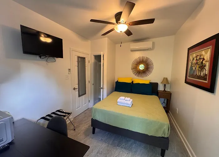 To enjoy your vacation in New Orleans, stay at the 1-room Charming Studio Cabin Under Oak Tree 2 Mins Walk To Magazine Quiet Neighborhood New Orleans, which is 4.9 km from Jackson Square and approximately 10 minutes by car from The National WWII Museum. Offering a hot tub, this 20 m² apartment is located within arm's reach of East Riverside.